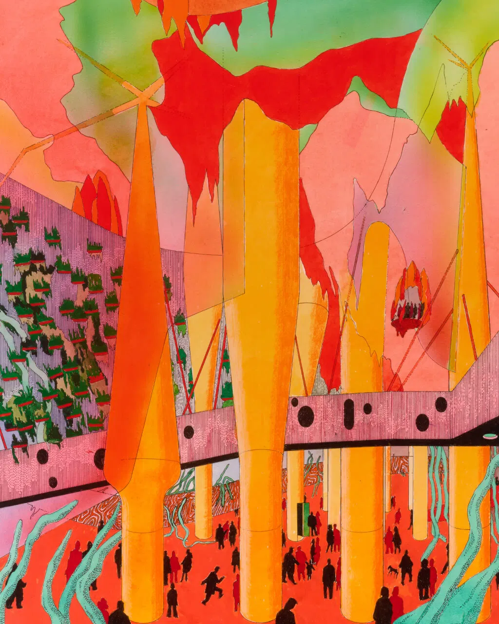 HENI is delighted to release A Cheerful and Mysterious New Architecture by Sir Peter Cook, a series of eight limited-edition prints after original works on paper. This diverse series presents some of Cook’s most recent investigations into architectural possibilities through vibrant, dreamlike scenes.