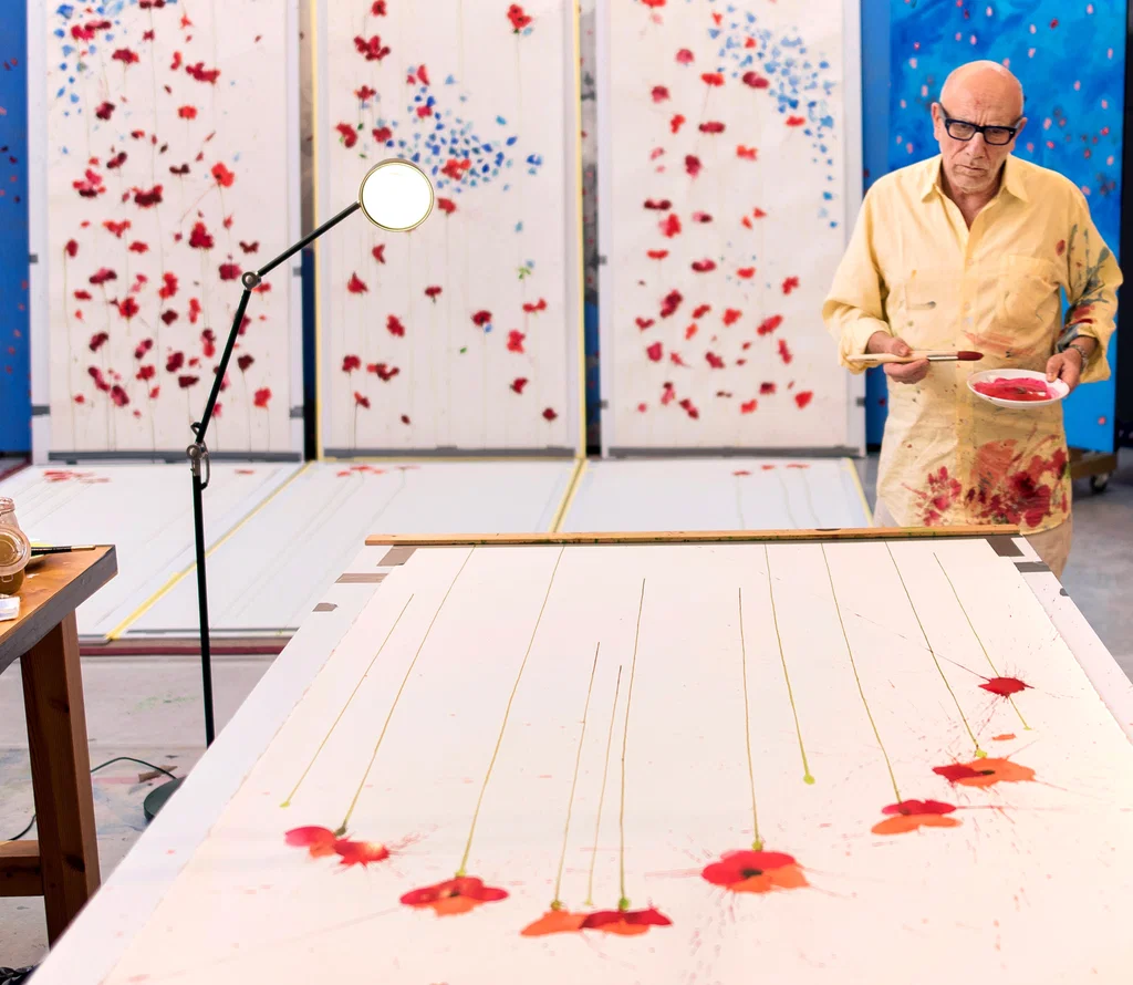Published in 2021, Vespers is a luminous hardback book showcasing the vast collection of over 500 watercolour poppies by British painter and architectural artist Sir Brian Clarke. It features a preface by the artist and an introduction by the renowned writer and art critic Robert Storr. The book is available on the HENI shop.