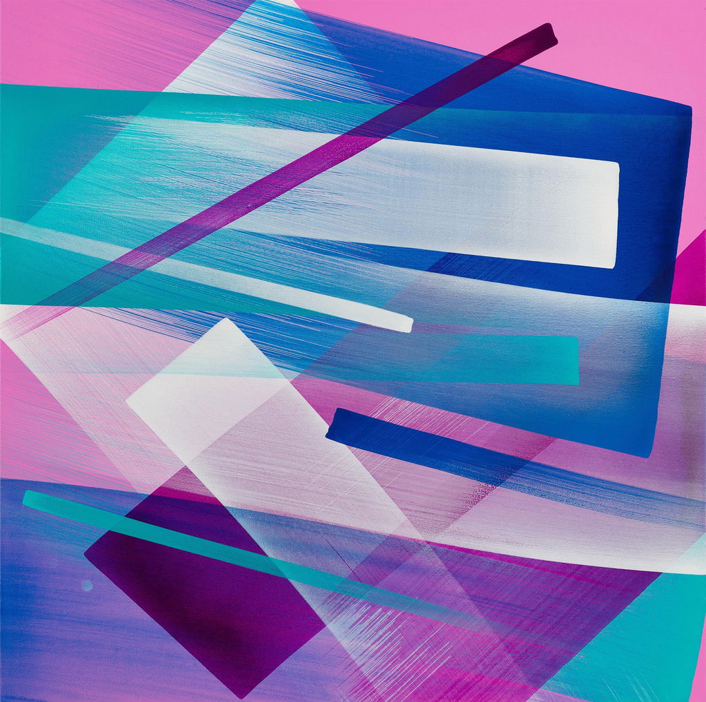 Known for creating monumental murals on streets across the world, in Color Rhythms MadC brings graffiti’s raw energy into the studio. In her works, vibrant and electrifying paint sprays, drips and scrapes across the canvases. Within the same dynamic composition, mesmerising waterfalls of colour meet transparent geometric forms, and fierce, calligraphic swipes of the brush.