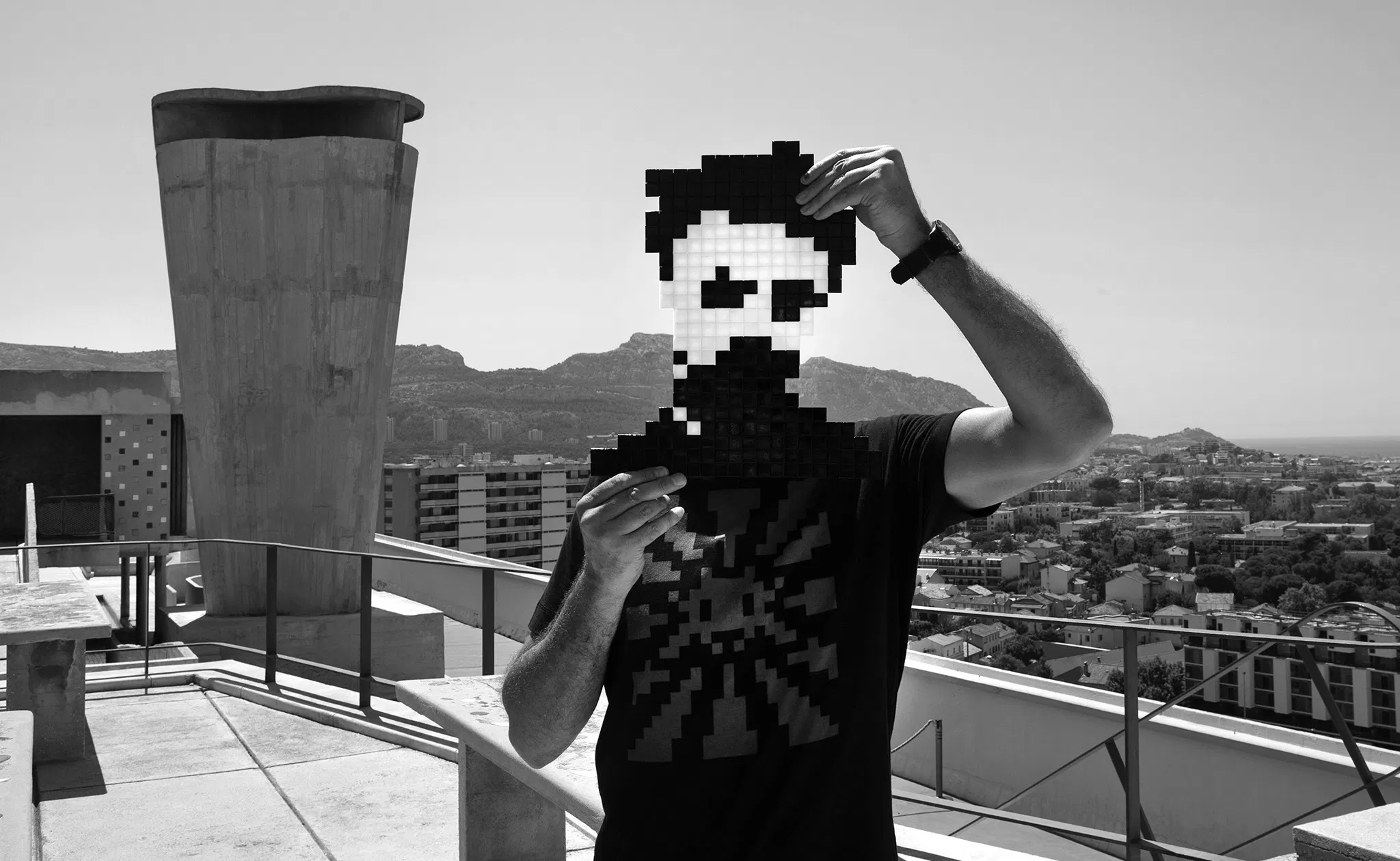 The elusive street artist Invader uses his now ubiquitous pixelated characters to unpretentiously bring art to the masses. Self-described as an Unidentified Free Artist (UFA) whose identity is perennially hidden behind masks and digital pixelations, his pseudonym reflects his artistic practice – to invade (often illegally) spaces with viral art since 1998.
