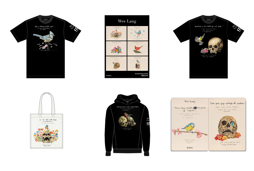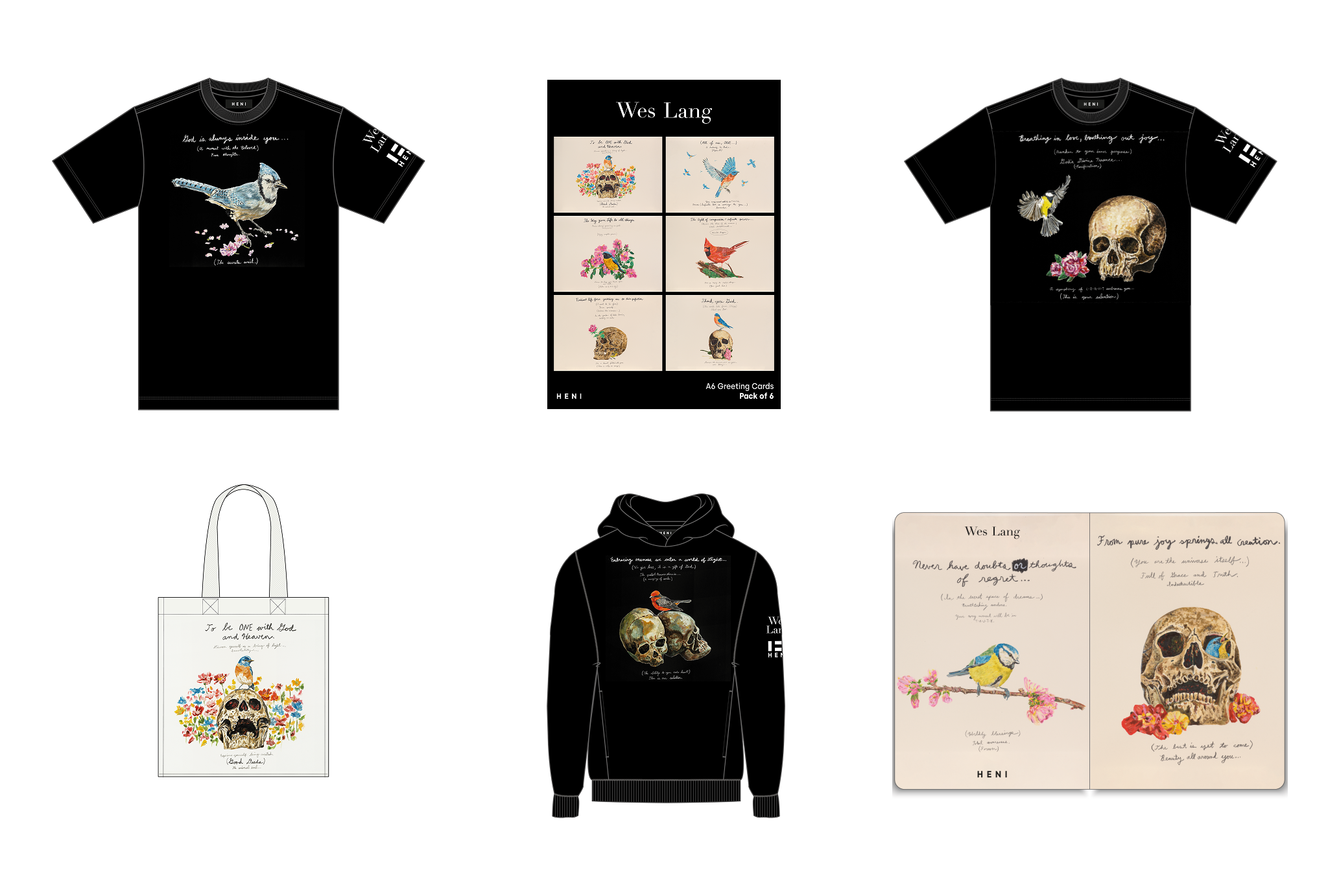 You can buy exclusive catalogues, apparel, accessories and more from our Wes Lang collections, Thank You God and The Black Paintings, on the HENI shop.
