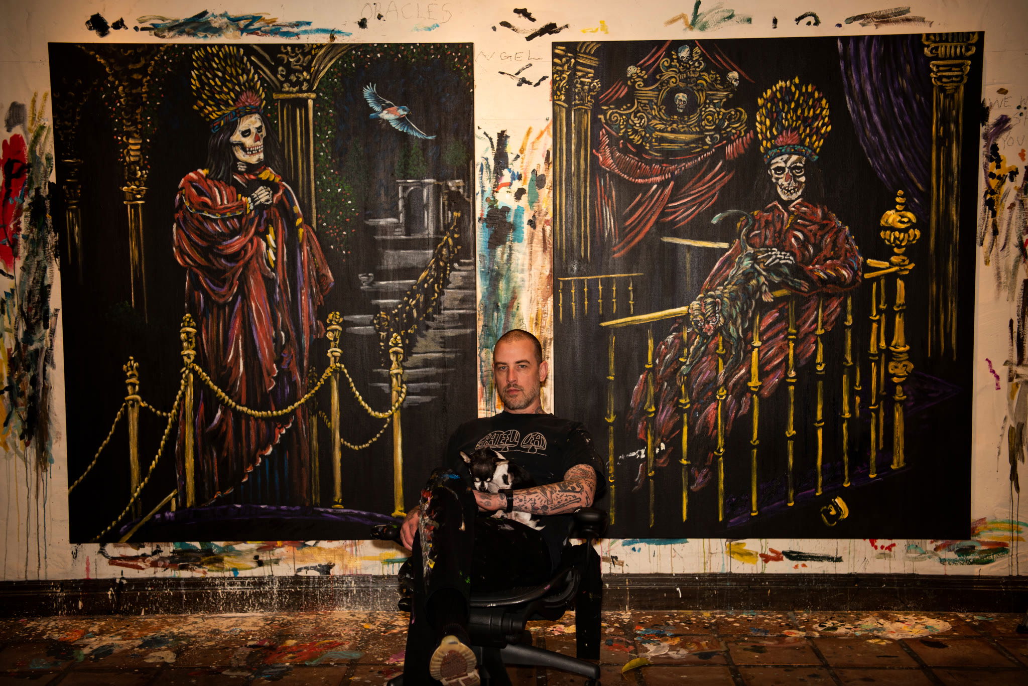 American artist Wes Lang creates provoking artworks, primarily on canvas and paper and featuring a universe of striking characters, that intend to inspire and motivate. Populating his works with everything from skulls, grim reapers and country music icons to flora, birds and horses, Lang’s imagery has the capacity to reach a wide-ranging audience but is nonetheless deeply personal.