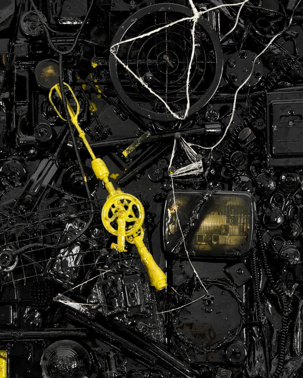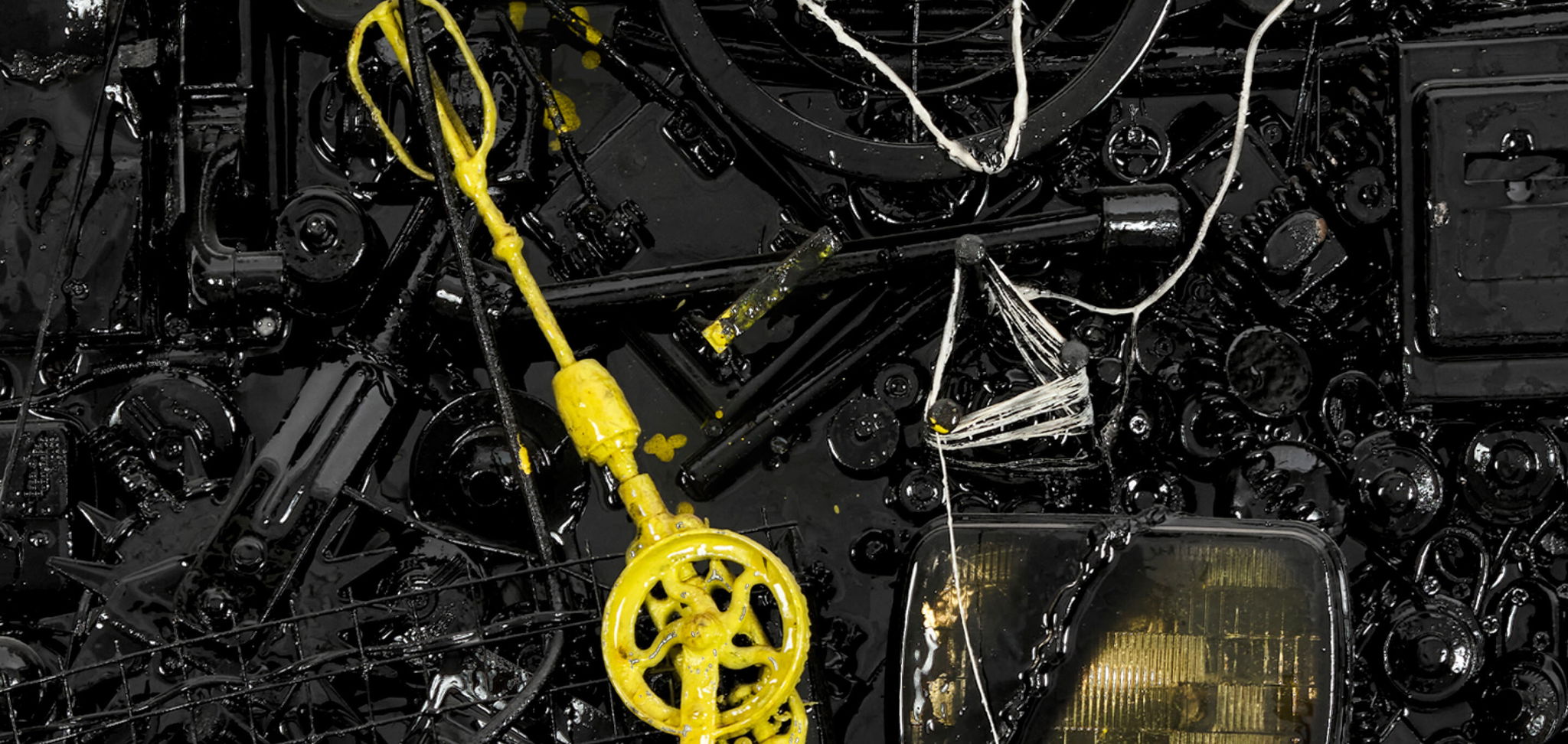 Jack White’s visual practice is significantly shaped by the city of Detroit, where he was born in 1975 - particularly his time in Southwest Detroit and the Cass Corridor – and draws inspiration from the urban environment, mid-century modern furniture designs, and De Stijl and Dada movements. White describes his work as “Hardware Store Art”, a synthesis of carpentry, upholstery, assemblage and reappropriation using materials ranging from resins, paints and epoxies to utilitarian materials and found objects. His sculptures are constructed upward and outward rather than carving into a material, emphasizing addition over reduction while retaining a minimalist approach. Tools and weapons frequently appear encased in epoxy, rendered static and immoveable, whereas handmade axes and hatches sometimes remain portable.