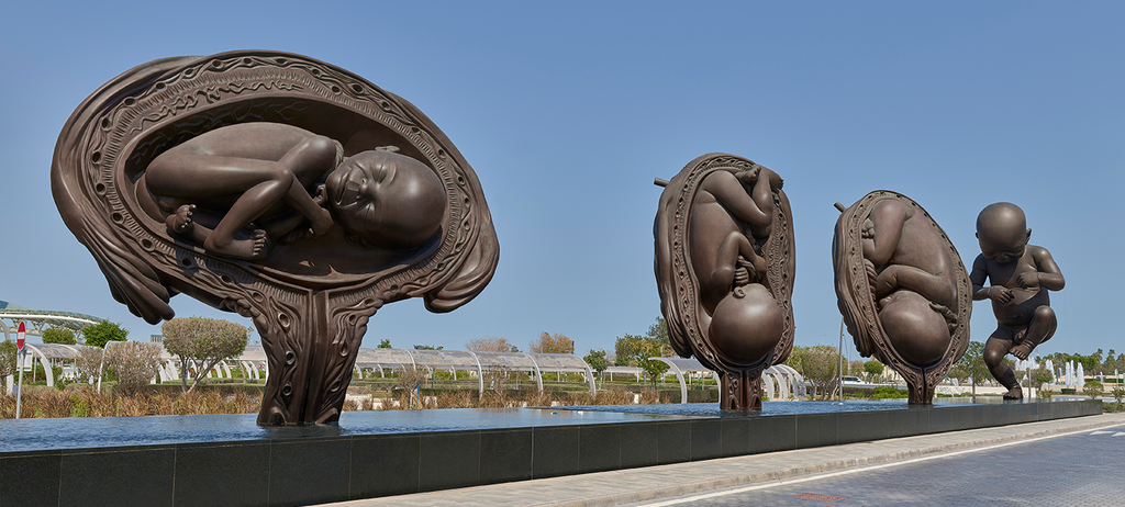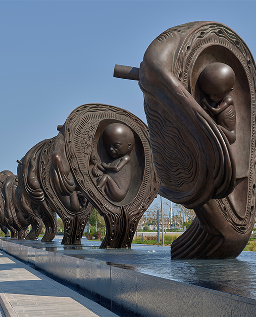 Considered Damien Hirst’s most complex project to date, the 189 works of Treasures from the Wreck of the Unbelievable took almost 10 years to create. The coral-encrusted The Warrior and the Bear sculpture is one of several large-scale artworks created for the exhibition, measuring over 7 metres tall and made entirely out of bronze. The design and intricate detailing of the artworks required a team of specialist fabricators across the world. A 90 minute documentary-style film was released to chronicle the narrative of the exhibition.