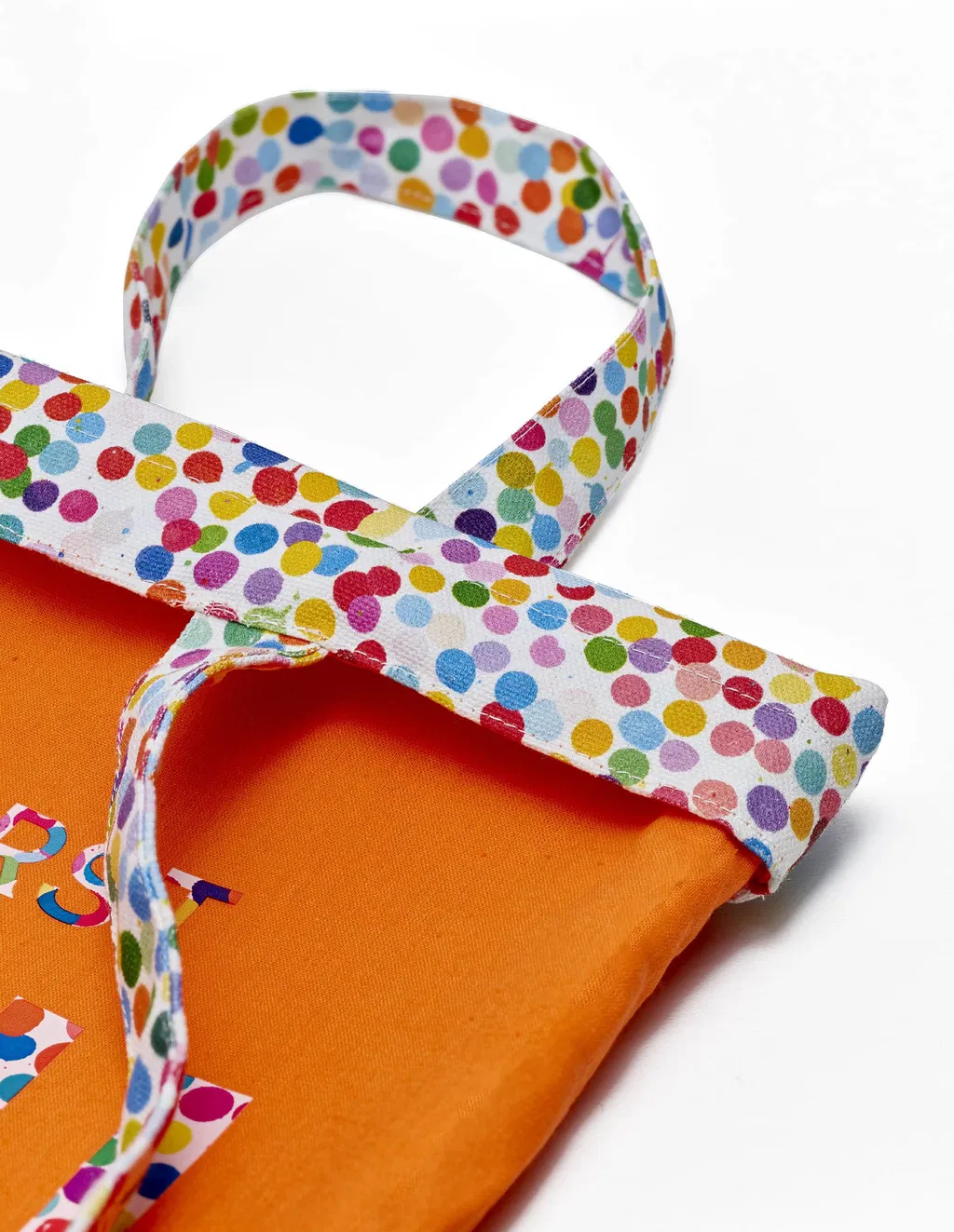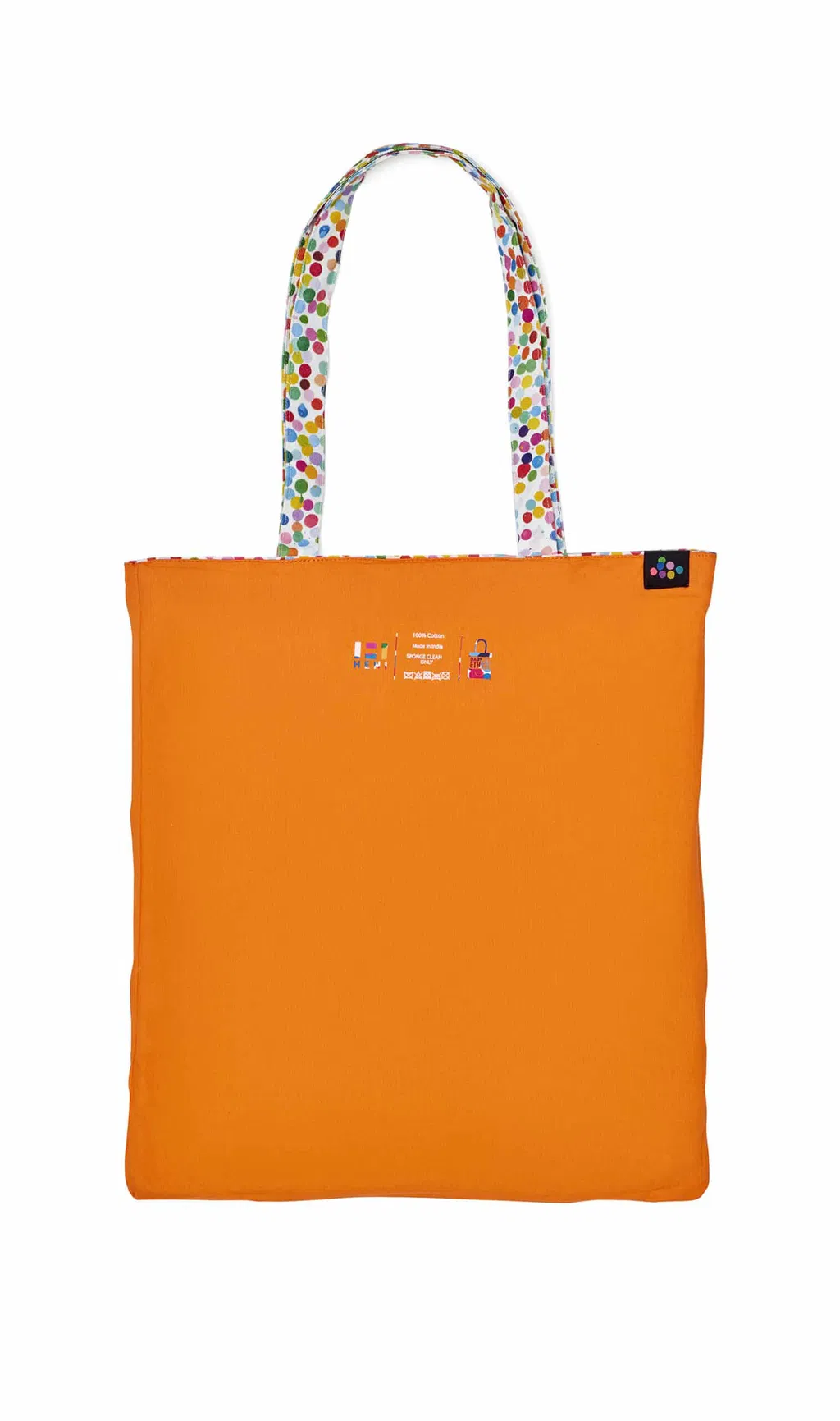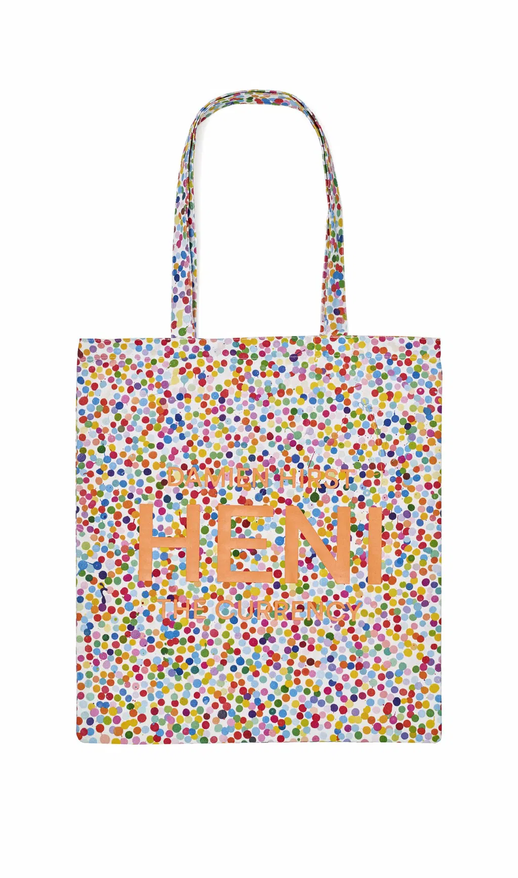 Reversible tote bags featuring the quintessential Currency Dot design and a HENI logo on each side, available in five different colours.