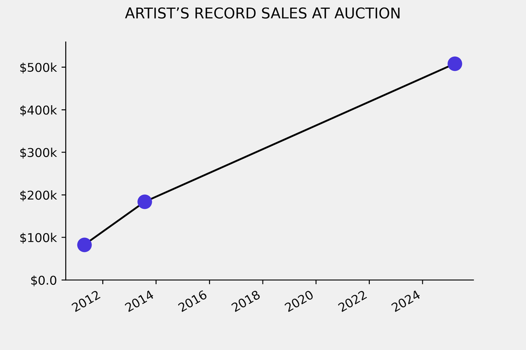 The sale beat the artist’s previous auction record by $324,600, a 175% rise.