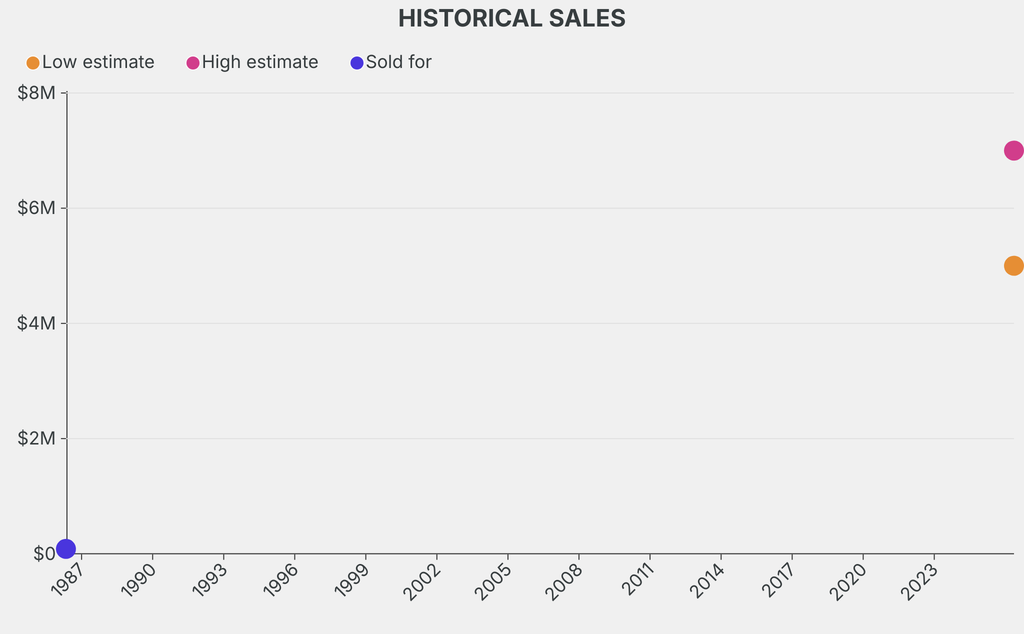 It last sold at auction in 1986 for $85,000 at Sotheby's.