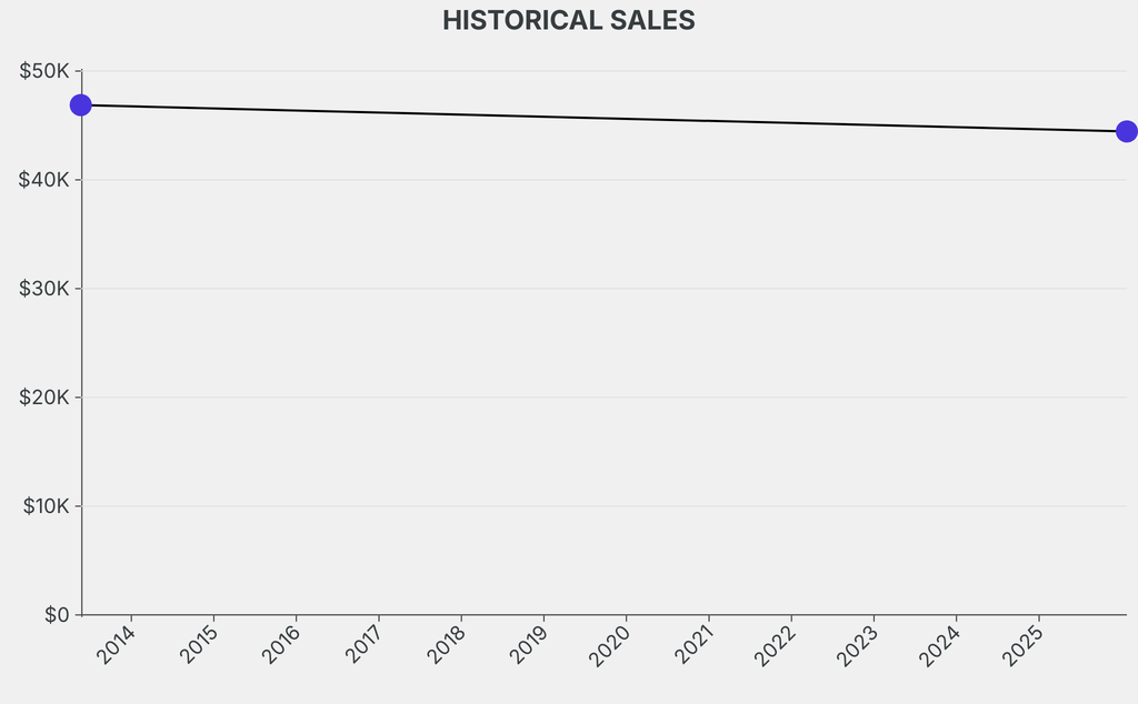 The sale was below the previous auction result by $2,425, realizing a 5% negative return. It last sold at auction in 2013 for $46,900 at Sotheby's.