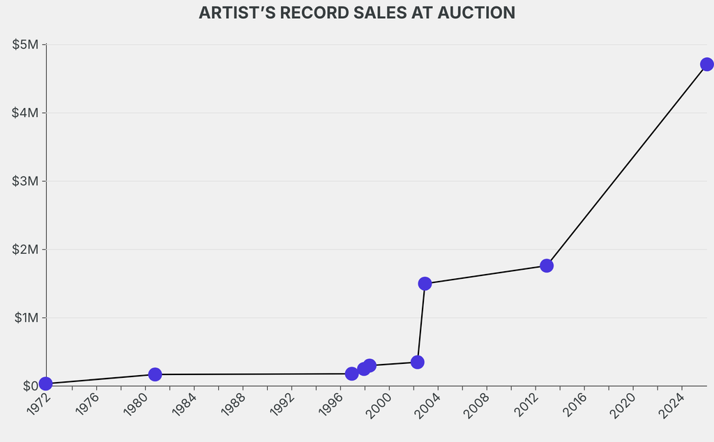 The sale beat the artist’s previous auction record by $2.95m, a 150% rise.