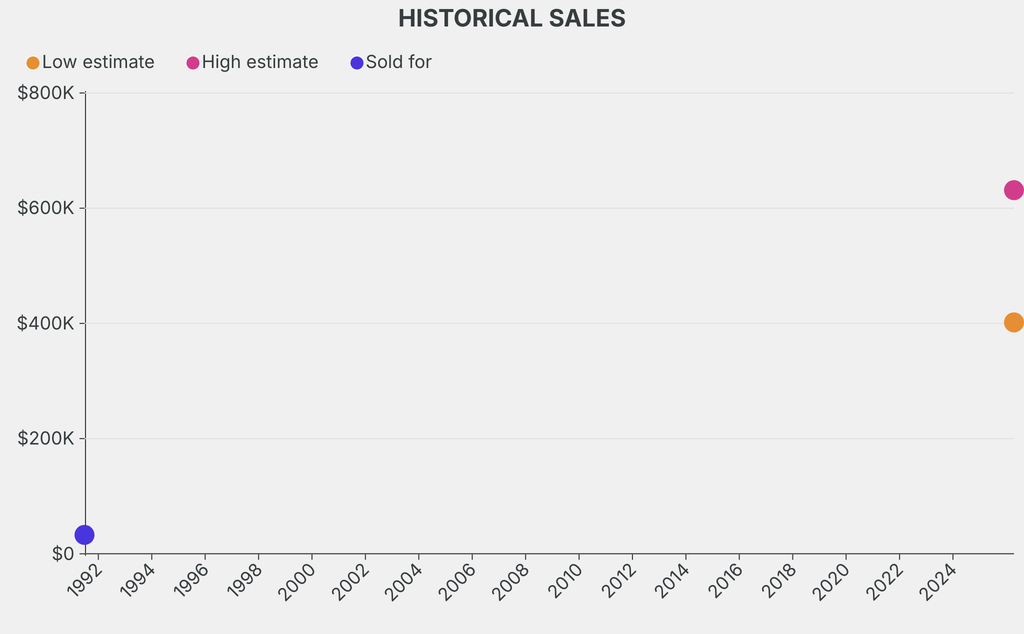 It last sold at auction in 1991 for $32,800 at Sotheby's.