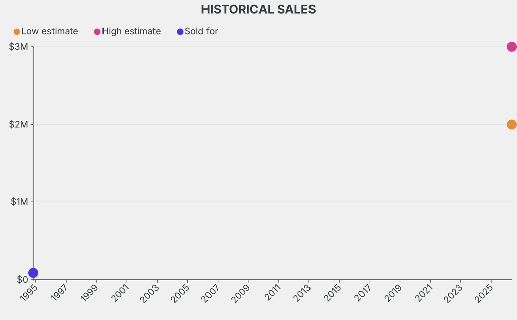 It last sold at auction in 1994 for $88,000 at Christie's.