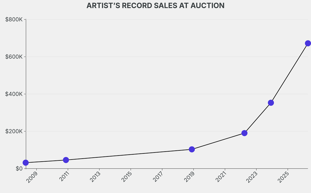 The sale beat the artist’s previous auction record by $318,900, a 90% rise.