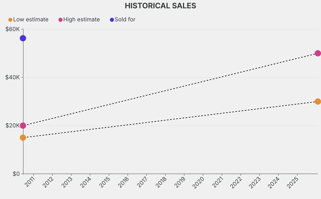 It last sold at auction in 2010 for $56,200 at Christie's. The current low estimate is 100% higher than its previous low estimate of $15,000.