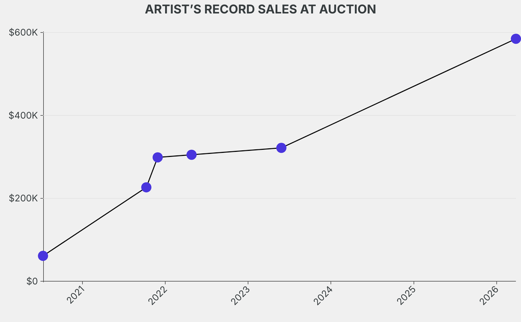 The previous record was set by A Breakfast in January (2020), which sold for $321,700 at Christie's on May 28, 2023. The work had been traded once in the past.