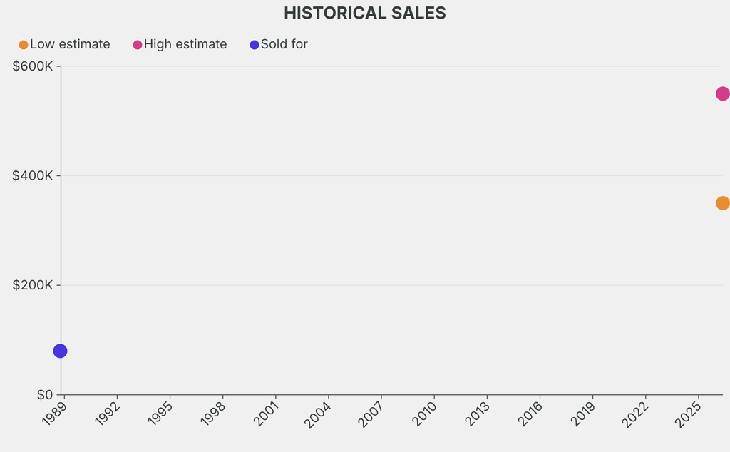 It last sold at auction in 1988 for $80,000 at Sotheby's.