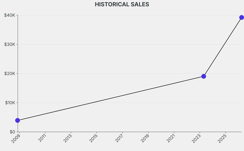 The sale beat the previous auction result for this work by $20,200, equivalent to an annualized return of 27%. It last sold at auction in 2023 for $19,100 at Bonhams.