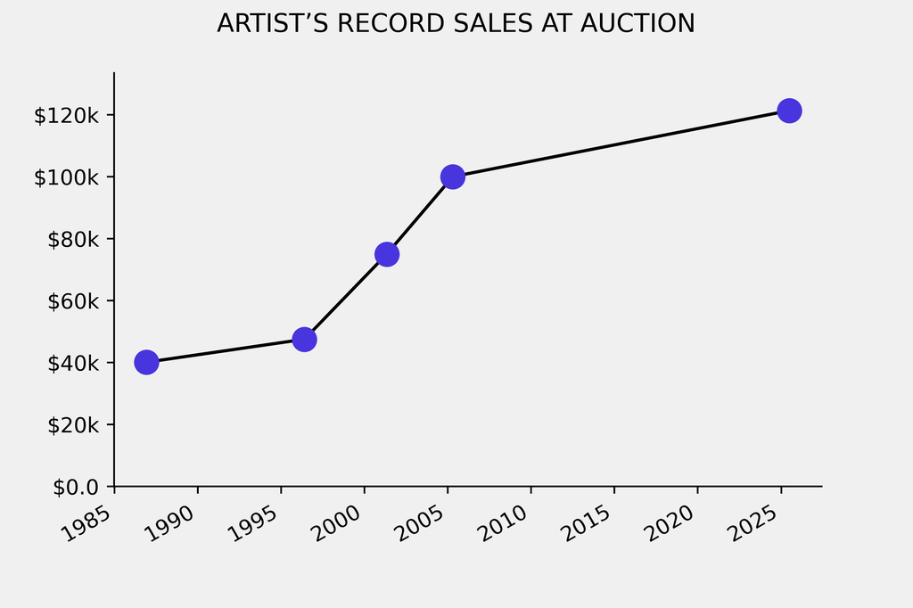 The sale beat the artist’s previous auction record by $21,300, a 21% rise. The previous record was set by An afternoon idyll (1874), which sold for $100,000 at Christie's on April 19, 2005.