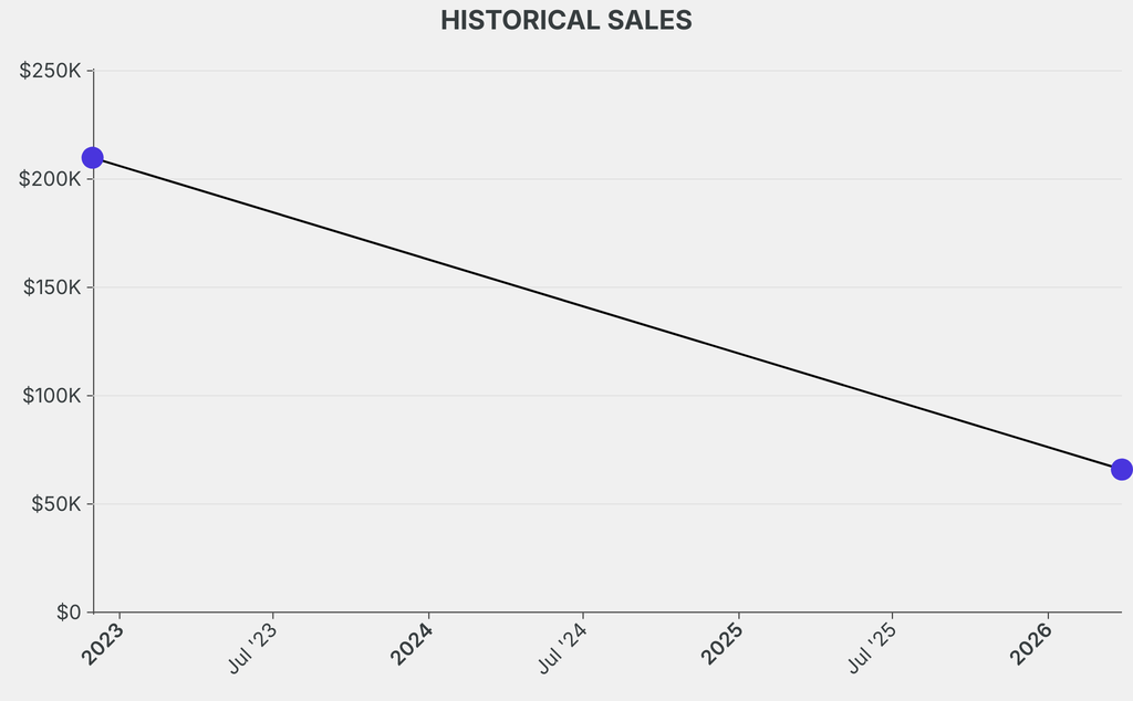 The sale was below the previous auction result by $143,900, realizing a 68% negative return. It last sold at auction in 2022 for $209,800 at Christie's.