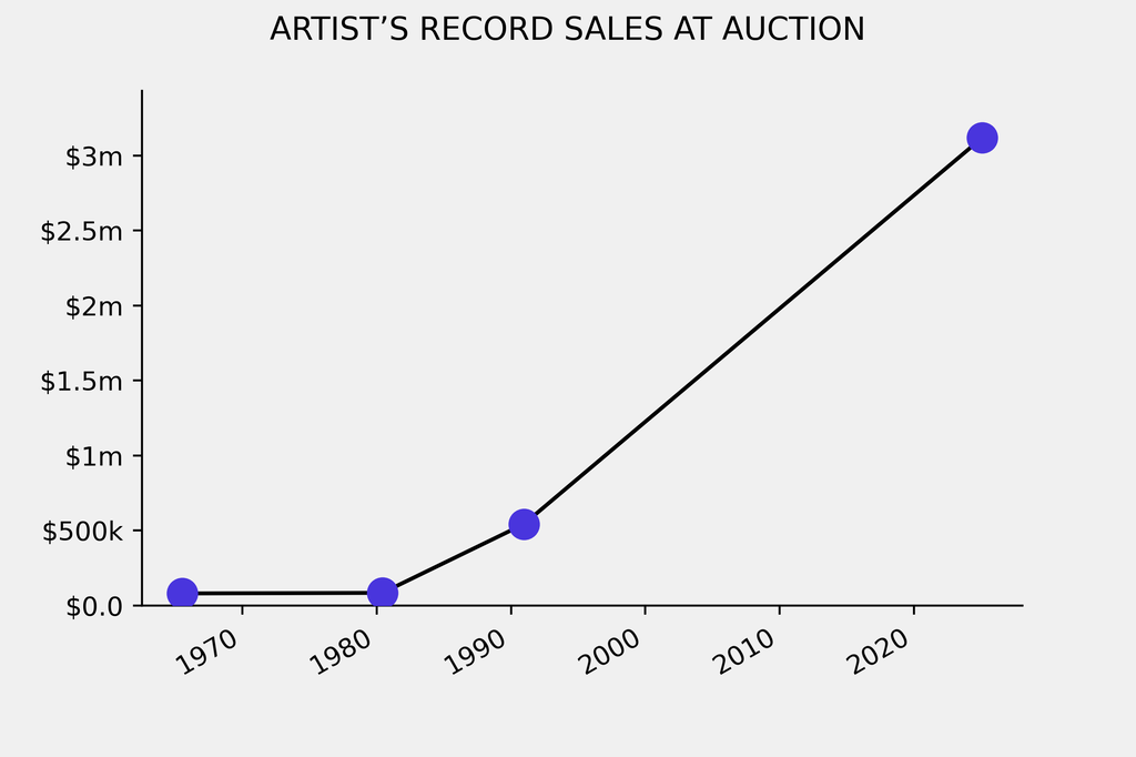The sale beat the artist’s previous auction record by $2.58m, a 400% rise.