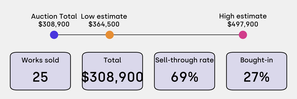 All results include the fees and premiums added to the price of a work of art when the auctioneer's hammer falls. Estimates, sale prices and totals are converted into US dollars. Sale prices are compared to the auction house’s low estimate, which do not include premiums.
