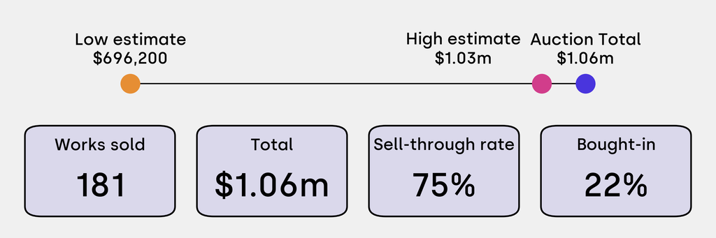 All results include the fees and premiums added to the price of a work of art when the auctioneer's hammer falls. Estimates, sale prices and totals are converted into US dollars. Sale prices are compared to the auction house’s low estimate, which do not include premiums.
