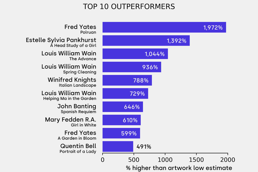 The outperformer sold for 1972% above its low estimate. Fred Yates, Polruan (Undated), sold for $16,100 ($778 low estimate).