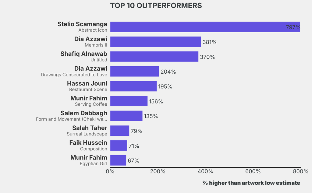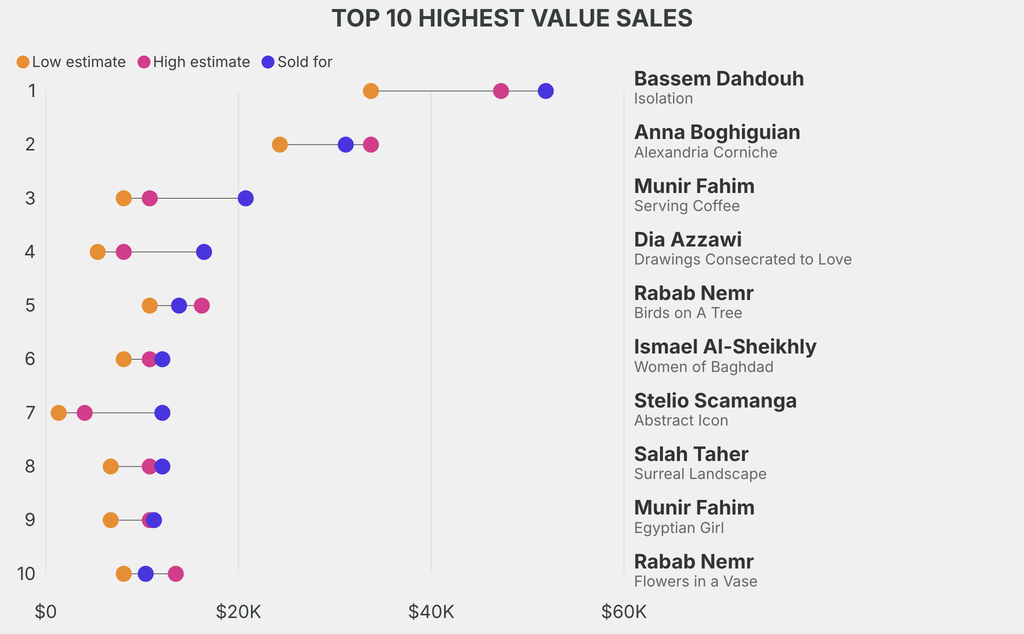 The star lot was: Bassem Dahdouh, Isolation (2024), which sold for $51,900, 53% above its $33,700 low estimate. It has not been traded before.