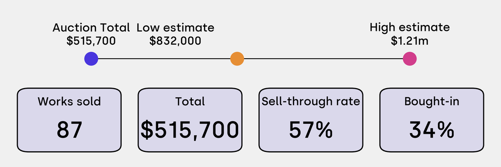 All results include the fees and premiums added to the price of a work of art when the auctioneer's hammer falls. Estimates, sale prices and totals are converted into US dollars. Sale prices are compared to the auction house’s low estimate, which do not include premiums.