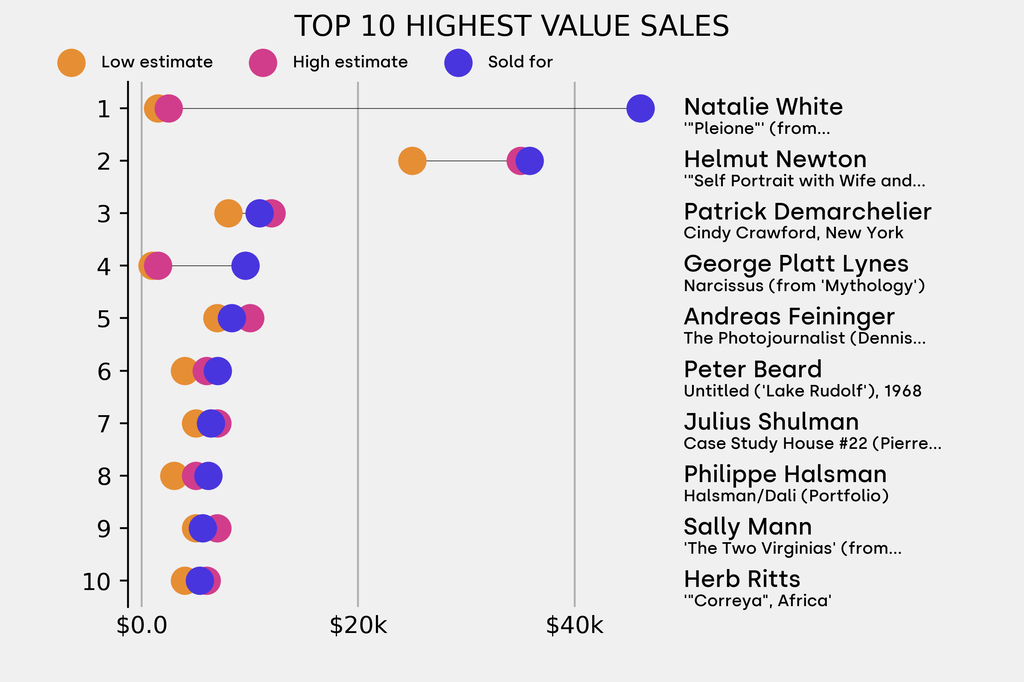 A work by Natalie White was the headline sale at Bonhams 'The Gift of Photographs' auction on December 5.