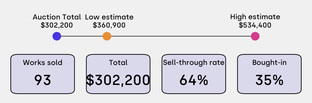 All results include the fees and premiums added to the price of a work of art when the auctioneer's hammer falls. Sale prices are compared to the auction house’s low estimate, which do not include premiums.