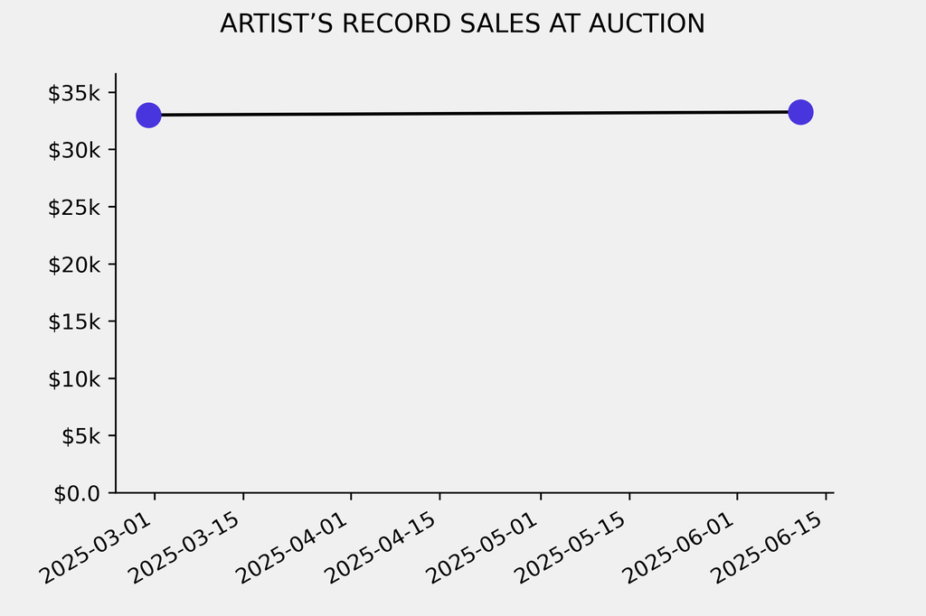 The previous record was set by Interior with Yellow Tulip in the Light and Red (1988), which sold for $33,000 at Sotheby's, Online on February 28, 2025. The work had been traded once in the past.