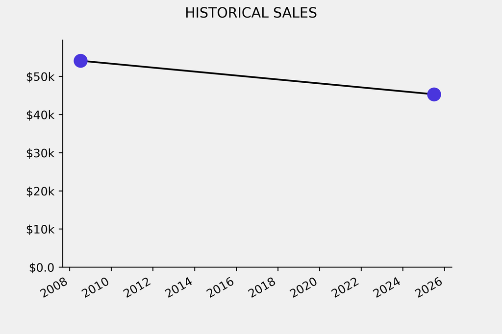The sale was below the previous auction result by $8,803, realizing a 16% negative return. It last sold at auction in 2008 for $54,100 at Christie's.