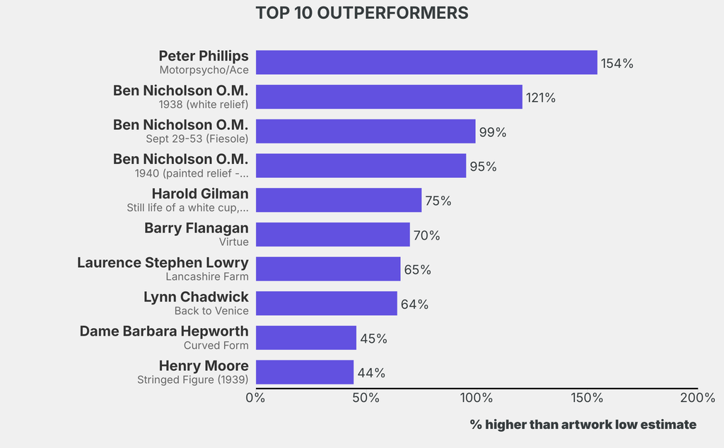 1 work was bought-in: Henry Moore, Head of a Girl (1923) (1930), estimated at $173,300 (low) to $240,000 (high). It has been traded once in the past.