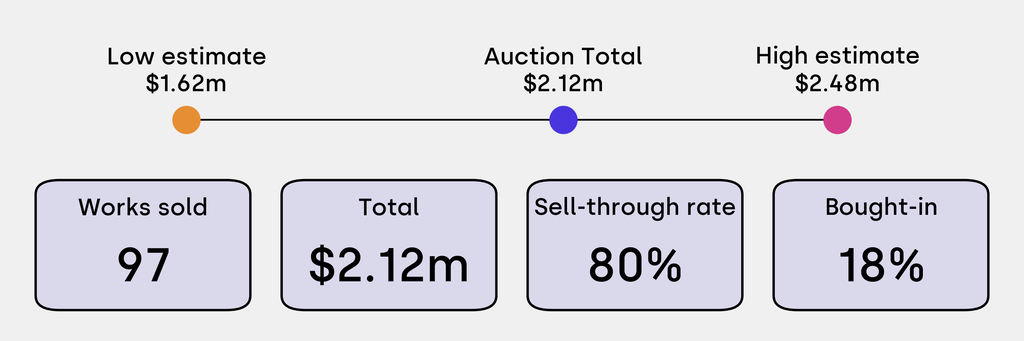 All results include the fees and premiums added to the price of a work of art when the auctioneer's hammer falls. Sale prices are compared to the auction house’s low estimate, which do not include premiums.