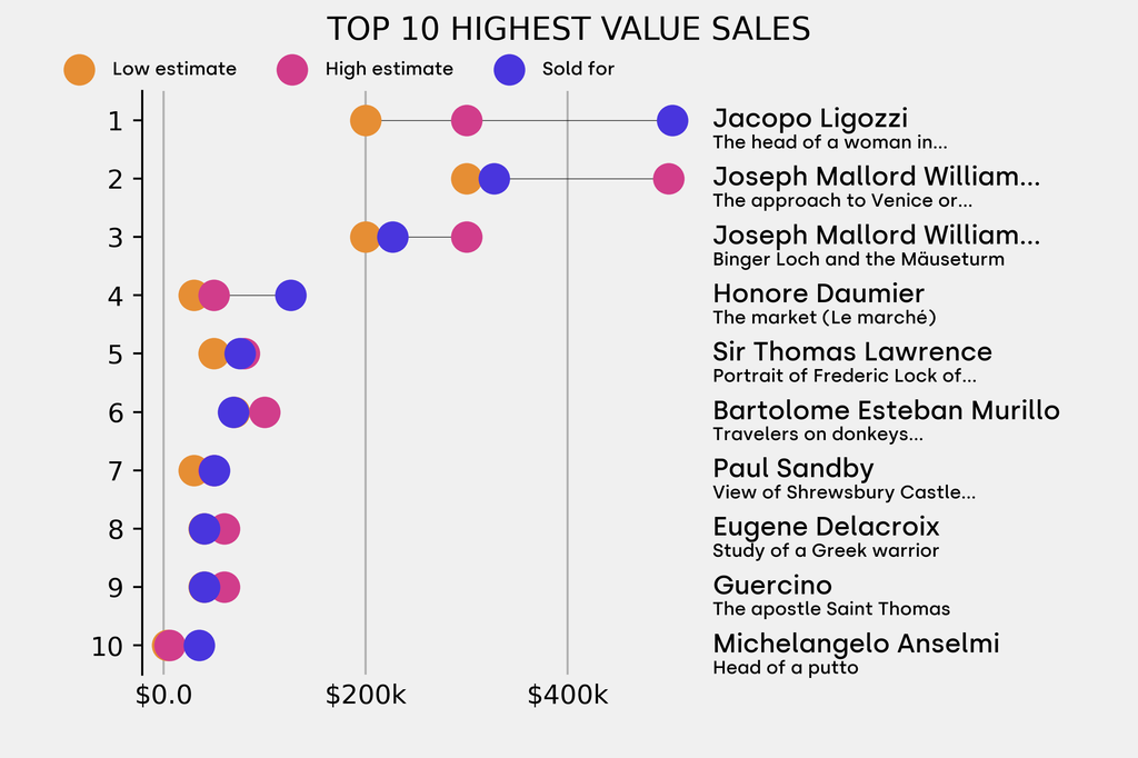 Breakdown of results against auction house estimates that are disclosed