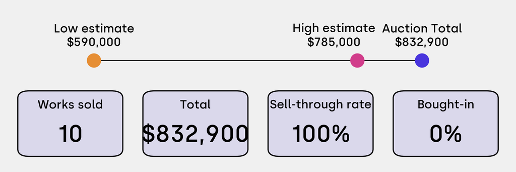 All results include the fees and premiums added to the price of a work of art when the auctioneer's hammer falls. Sale prices are compared to the auction house’s low estimate, which do not include premiums.