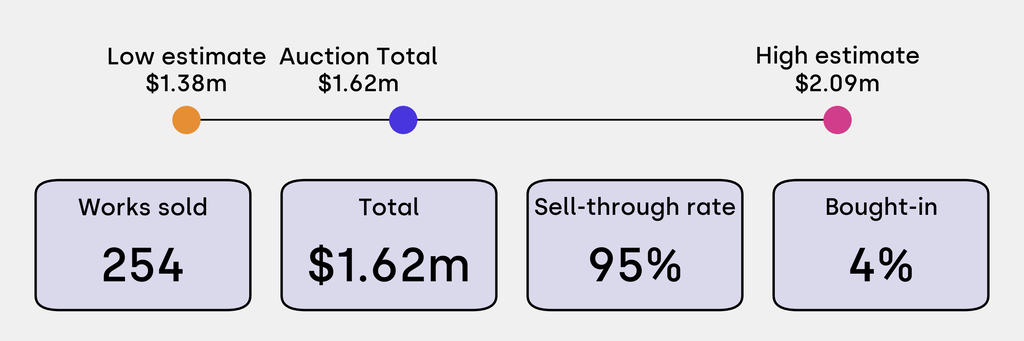 All results include the fees and premiums added to the price of a work of art when the auctioneer's hammer falls. Sale prices are compared to the auction house’s low estimate, which do not include premiums.