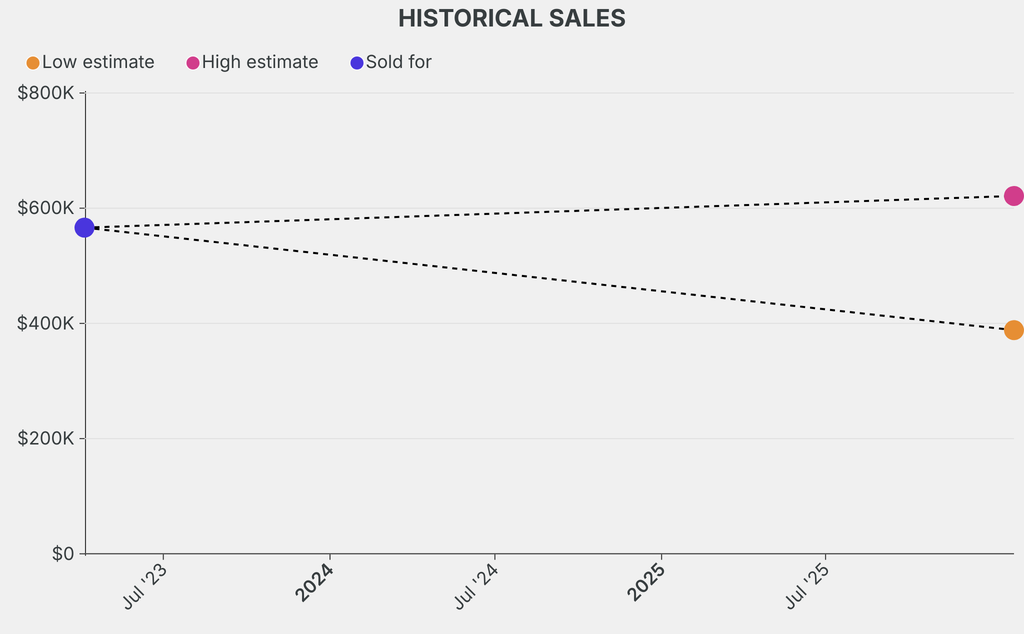 It last sold at auction in 2023 for $566,200 at Sotheby's. The current low estimate is 1% higher than its previous low estimate of $382,200.