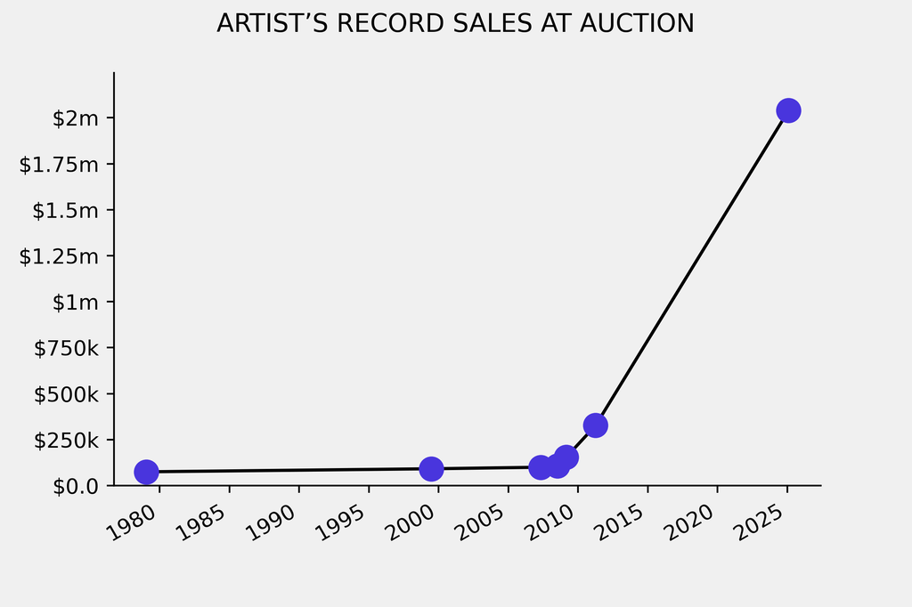 The sale beat the artist’s previous auction record by $1.71m, a 500% rise.