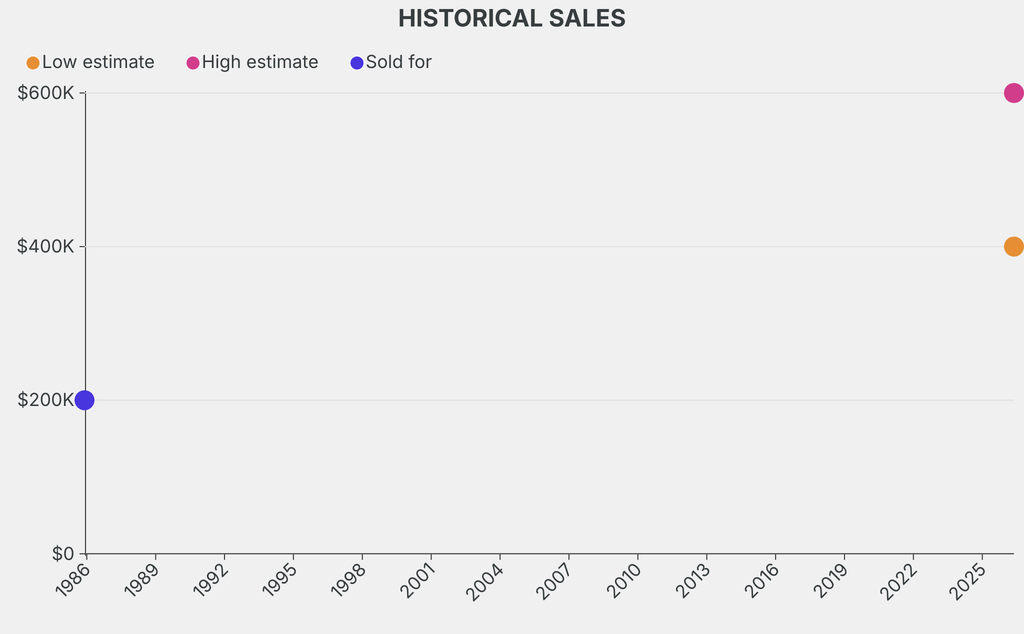It last sold at auction in 1985 for $200,000 at Sotheby's.