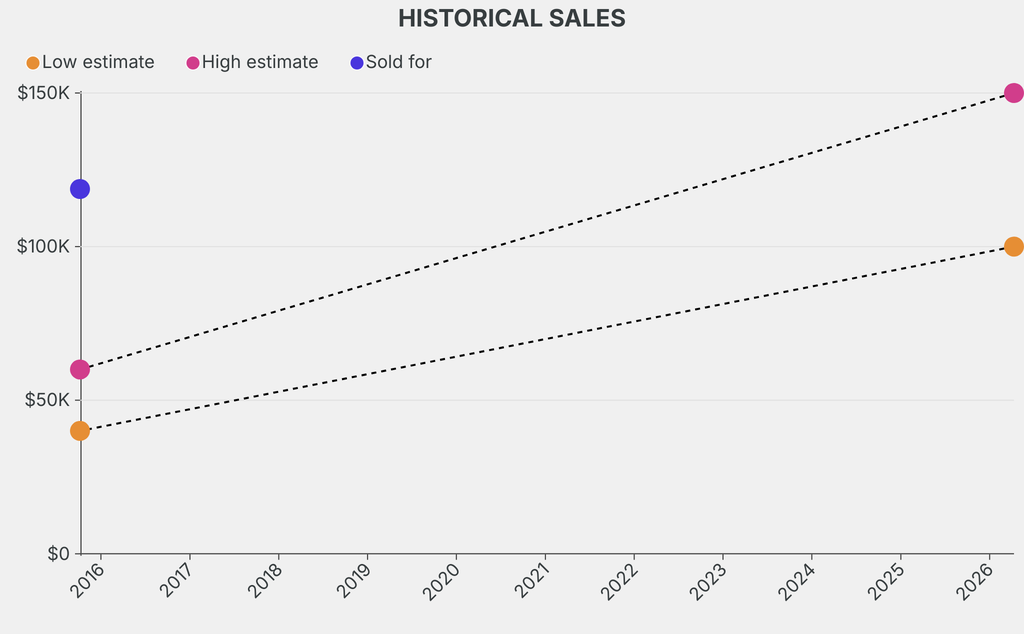 It last sold at auction in 2015 for $118,800 at Sotheby's. The current low estimate is 150% higher than its previous low estimate of $40,000.