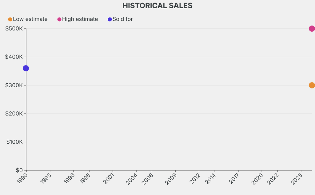 It last sold at auction in 1989 for $360,000 at Christie's.