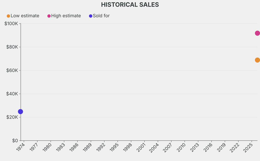 It last sold at auction in 1973 for $24,800 at Sotheby's.