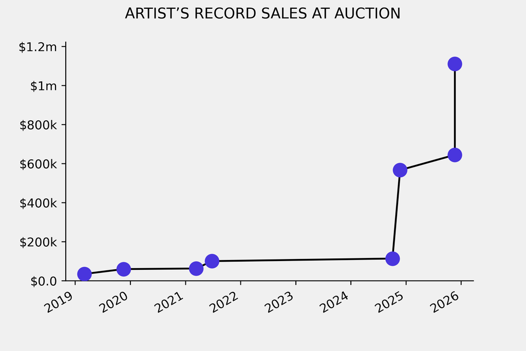 The previous record was set by Daughter of Revolutions (2014), which sold for $645,000 at Phillips on November 19, 2025. The work had been traded once in the past.