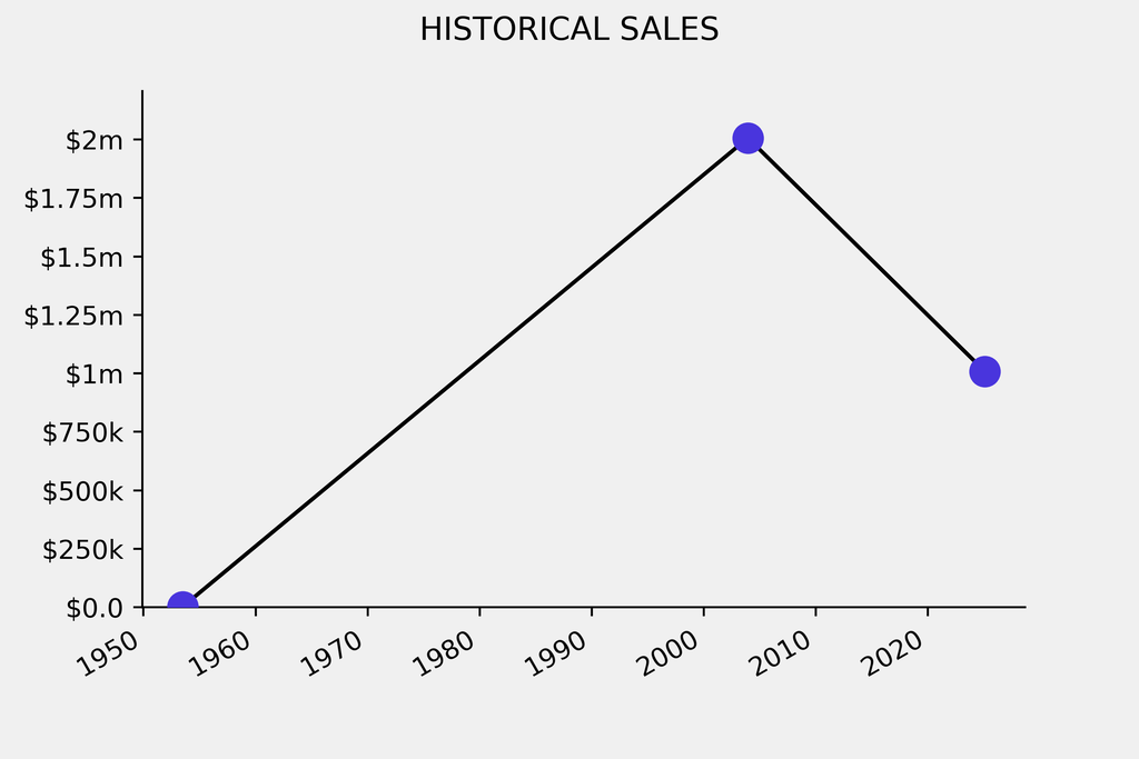 The sale was below the previous auction result by $998,300, realizing a 49% negative return. It last sold at auction in 2003 for $2.01m at Sotheby's.