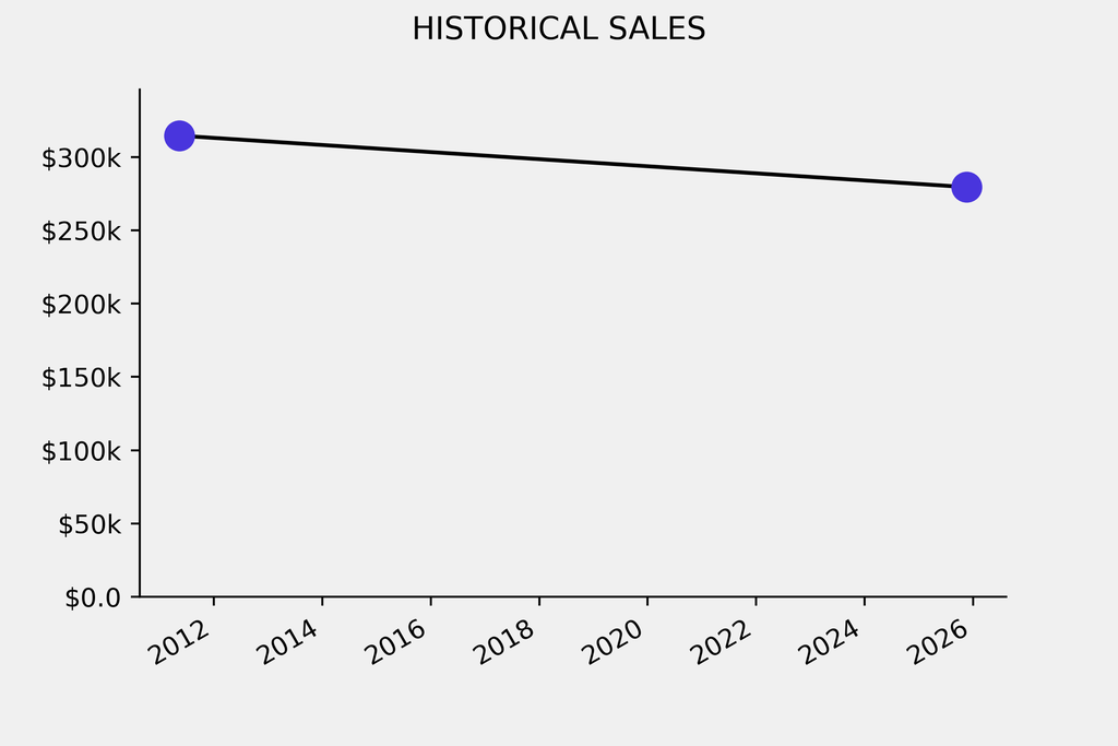 The sale was below the previous auction result by $35,100, realizing a 11% negative return. It last sold at auction in 2011 for $314,500 at Sotheby's.