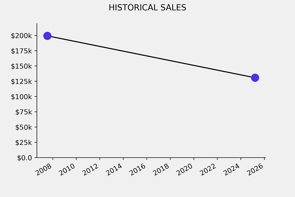 The sale was below the previous auction result by $68,600, realizing a 34% negative return. It last sold at auction in 2007 for $199,400 at Sotheby's.