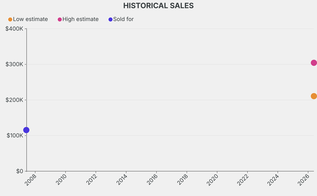 It last sold at auction in 2007 for $115,600 at Kunsthaus Lempertz.