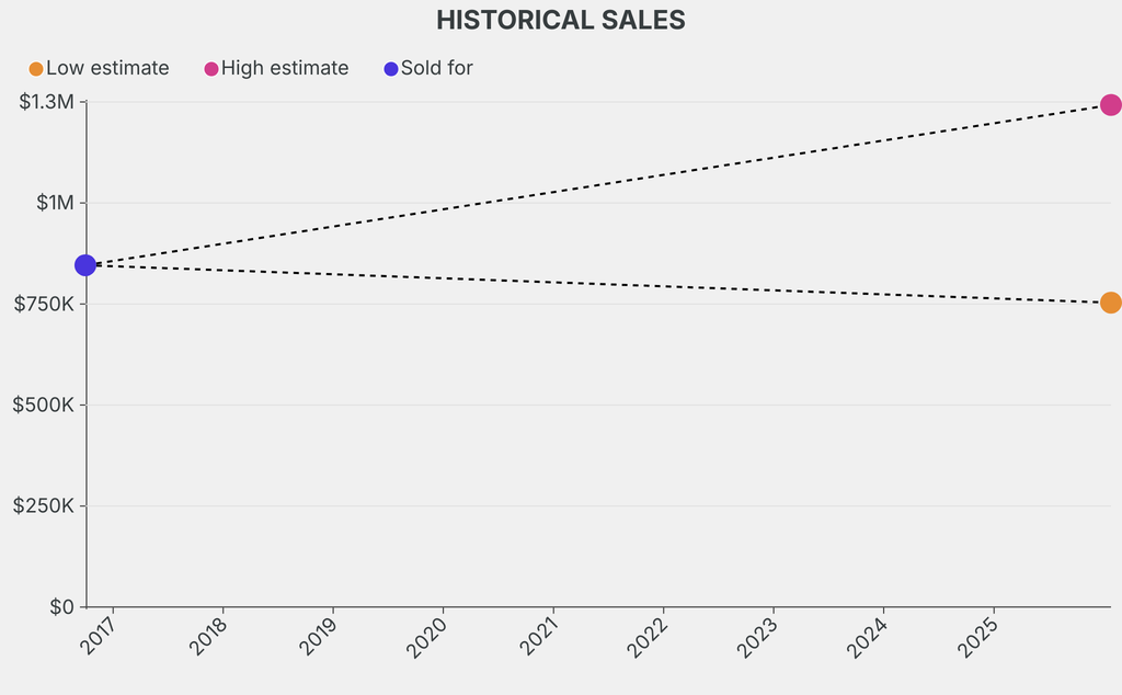 It last sold at auction in 2016 for $845,900 at Sotheby's. The current low estimate is 6% higher than its previous low estimate of $709,100.