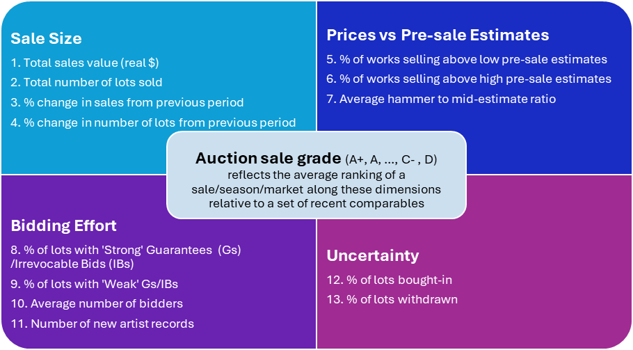 We call this average the overall ‘Sale Score’. This step ensures that we could have different numbers of ranking characteristics over time (e.g. the number of bidders is a metric that is not available for all sales)